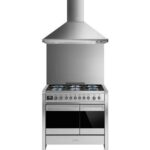 CENTRE DE CUISSON 100 CM, 6 FOYERS GAZ DONT 2 ULTRA RAPIDE DE 4200 W, 2 FOURS DONT 1 AVEC NETTOYAGE CATALYSE ET VAPOR CLEAN, CHALEUR TOURNANTE, TOURNEBROCHE INCLUS, INOX / VERRE NOIR BLACK ECLYPSE