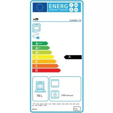 - Valeurs du label énergie : Label énergie A, Consommation en chaleur tournante 0,83 kW