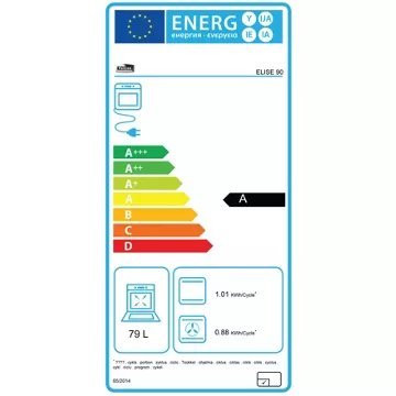 • Valeurs du label énergie : Label énergie A, Consommation en convection naturelle 0,79 kW, Consommation en chaleur tournante 0,88 kW
