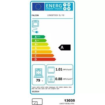- Valeurs du label énergie : Label énergie A, Consommation en convection naturelle 0,88 kW, Consommation en chaleur tournante 0,88 kW
