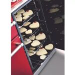 • Mode de cuisson : chaleur tournante brassée, le four est équipé de 2 résistances, une en bas (sole), une en haut (voûte) et d’une hélice placée au fond de la cavité qui permet de brasser l’air, pour une cuisson rapide et une repartition homogène de la chaleur.