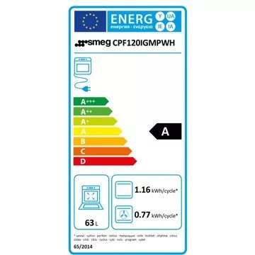 - Valeurs du label énergie : Label énergie A, Consommation en convection naturelle 0,77 kW, Consommation en chaleur tournante 0,68 kW