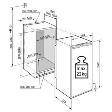 - Dimensions d’encastrement l x h x p : 56 x 157.4 x 55 cm