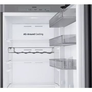 garantit une température homogène et prévient la formation de givre, tandis que le compresseur Digital Inverter assure des performances énergétiques de classe E, une consommation maîtrisée de 120 kWh/an et un fonctionnement silencieux à seulement 39 dB(A). Le réfrigérateur SAMSUNG RR39C76K3AP est l’allié idéal pour une conservation parfaite et une gestion énergétique optimisée.
