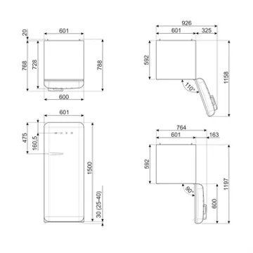 - Installation : porte avec débord, le réfrigérateur nécessite d’être installé à quelques centimètres du mur pour accéder facilement aux bacs et aux clayettes