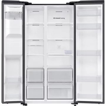 Doté de la technologie SpaceMax, le RS65DG5403B1 offre un volume intérieur plus grand sans compromettre les dimensions extérieures, grâce à des parois plus fines. L’innovation ne s’arrête pas là : ce modèle est équipé d’une fabrique de glace intégrée à la porte, permettant d’accéder facilement à de