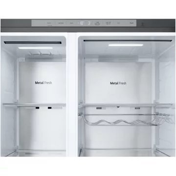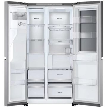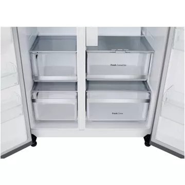 Avec un volume total de 628 litres, le LG GSXE90MBAD est conçu pour les familles nombreuses ou ceux qui aiment stocker en grande quantité. Le réfrigérateur de 407L et le congélateur de 221L offrent un espace de rangement flexible et généreux. La technologie Total No Frost assure une réfrigération uniforme et rapide grâce à la distribution d’air froid Multi Air Flow™, tandis que le niveau sonore de