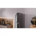 Smart Home. L’interface utilisateur intuitive comprend un écran TFT couleur 2,4″ avec commande Touch & Swipe, ainsi que des alarmes visuelles et sonores pour la porte et la température. La fonction VarioTemp offre une flexibilité supplémentaire en permettant d’ajuster la plage de température du compartiment congélateur pour des besoins spécifiques, et la LightTower assure un éclairage intérieur optimal. De plus, la classe énergétique et le niveau sonore de 34 dB(A) font de ce réfrigérateur un choix éco-responsable et discret pour la cuisine moderne.