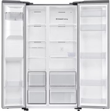 Le Réfrigérateur Américain SAMSUNG RS6EDG5403S9 se distingue par sa capacité exceptionnelle de 635 litres, répartie entre un espace réfrigérateur de 417 litres et un congélateur de 218 litres. Grâce à la technologie de froid ventilé intégral, ce modèle assure une répartition homogène du froid, permettant de conserver les aliments frais plus longtemps et d’éliminer la corvée du dégivrage. La présence d’une fabrique de glace directement dans la porte, associée à un distributeur d’eau, de glaçons et de glace pilée (nécessitant une arrivée d’eau), offre un confort d’utilisation quotidien. Les poignées intégrées et l’alarme sonore de porte ouverte ajoutent une touche de praticité et de sécurité à ce réfrigérateur au design élégant.