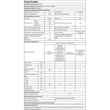 - Volume total : 248,0 L – Dégivrage automatique du congélateur