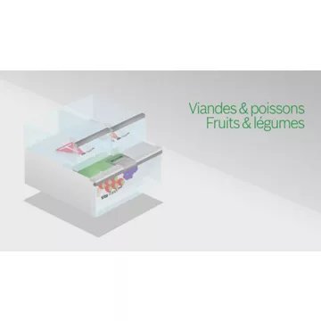 • Froid du réfrigérateur : le froid statique permet de répartir le froid de façon naturelle, chaque zone est dédiée à un type d’aliment