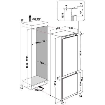 - Dimensions d’encastrement l x h x p : 71 x 194 x 56 cm