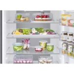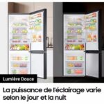 Le réfrigérateur Samsung COMBINÉ RB53DG703DS9 se connecte à l’application SmartThings. Si vous êtes sujet aux fringales nocturnes, mais que vous ne voulez pas être trop ébloui, vous pouvez régler l’intensité de l’éclairage intérieur du réfrigérateur. Avec l’option Lumière douce sur l’application, vous pouvez choisir entre les modes Lumière tamisée ou Nuit pour éviter de trop vous réveiller, quand vous ouvrirez le réfrigérateur.