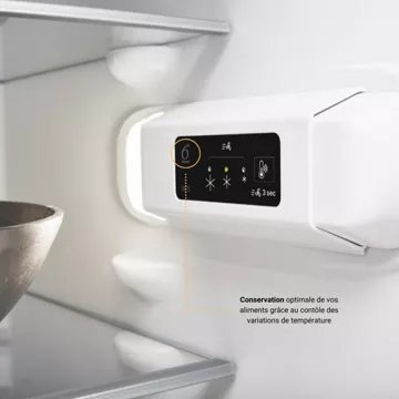 • Type de thermostat : électronique, permet un réglage précis de la température du réfrigérateur. Esthétique, intuitif et nettoyage facile