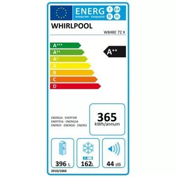 Le grand volume du réfrigérateur combiné WHIRLPOOL W84BE72X, en fait un appareil idéal pour toute la famille. De classe énergétique A++, il vous offre une performance maximale avec une faible consommation d’énergie. Et avec son niveau sonore de seulement 44 dB, qui le rend particulièrement silencieux, il se fait oublier dans la cuisine.