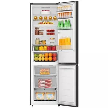 Le réfrigérateur combiné HISENSE RB440N4AFC se distingue par son ouverture sans débord à 90°C, permettant une installation aisée contre un mur et une utilisation optimale de l’espace intérieur, y compris l’accès complet aux tiroirs. Ce modèle, avec son design élégant en inox noir, s’intègre harmonieusement dans les cuisines ouvertes, tout en promettant un fonctionnement quasi inaudible. Avec un niveau sonore de seulement 36 dB, il se classe parmi les appareils les plus silencieux du marché, garantissant ainsi un confort acoustique appréciable au quotidien.