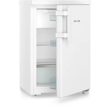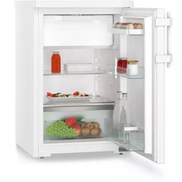Le Réfrigérateur top LIEBHERR KTe551 se distingue par sa classe énergétique avantageuse et ses dimensions compactes de 85 x 55 x 60,7 cm, idéales pour une installation sous plan de travail. Avec une consommation électrique annuelle de seulement 142 kWh et un volume total de 111 litres, dont 96,9 litres dédiés au réfrigérateur et 15 litres au congélateur, cet appareil est un modèle d’efficacité énergétique. La régulation électronique tactile et l’affichage digital de la température garantissent un contrôle précis, tandis que les alarmes visuelle et sonore pour la porte et la température assurent une sécurité optimale. Le niveau sonore réduit à 37 dB(A) et la classe climatique SN-T, permettant un fonctionnement optimal entre +10 °C et +43 °C, complètent le profil de ce réfrigérateur discret et fiable.