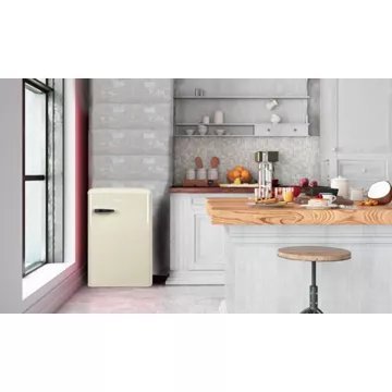 Le Réfrigérateur Table top AMICA AR1112C, d’une hauteur de 86 cm et d’un volume utile total de 108 L, allie esthétique et praticité. Son design rétro, souligné par une finition crème élégante, apporte une touche de charme à votre cuisine tout en étant facile à placer grâce à sa pose libre. L’intérieur, doté d’un volume utile de 95 L pour le réfrigérateur, est équipé d’une clayette en verre avec finition silver, de trois balconnets, d’un bac à légumes et d’un support à oeufs, tous conçus pour maximiser l’espace de rangement. Avec son éclairage LED et son thermostat mécanique, ce modèle combine à la perfection le style vintage et la commodité moderne.