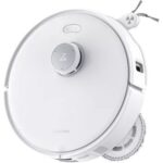 - Serpillière déportée : le robot est capable de nettoyer plus efficacement les angles et bords des murs en déployant sa serpillière vers l’extérieur.