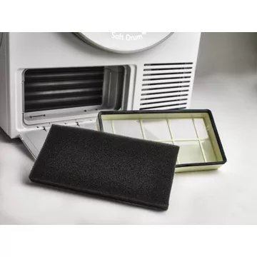 Économique, ce sèche-linge a été classé A++ pour sa consommation énergétique. Il dispose également de finitions très soignées : le bandeau, le bouton rotatif et les touches sont en métal véritable. Le système Multifiltre évite en plus que des peluches ne pénètrent dans l’appareil.