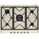 Impossible de résister au charme rétro de la table de cuisson à gaz SMEG SR975PGH?! Avec sa finition en fonte laquée couleur crème, ses gros boutons chromés et ses arêtes retravaillées au look graphique, elle apportera à votre cuisine la petite touche vintage qui lui manquait.