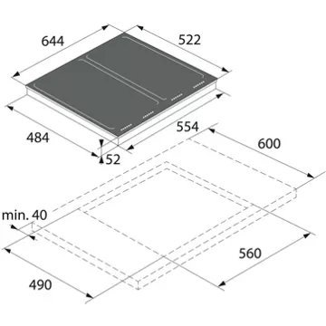 - LxHxP (encastrement) : 56 x 4.3 x 49 cm