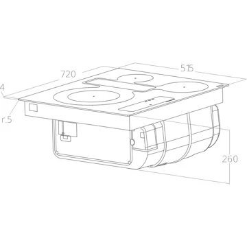 - Type de table : induction avec hotte intégrée, solution pratique et esthétique pour combiner la table de cuisson et la hotte. Elle nécessite un encastrement spécifique (voir infos dimensions).