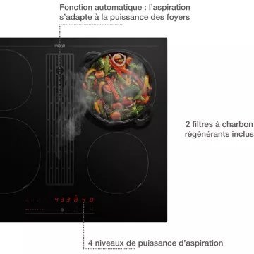 - Le + : fonction automatique, la hotte s’allume et adapte l’aspiration à la puissance de la table.