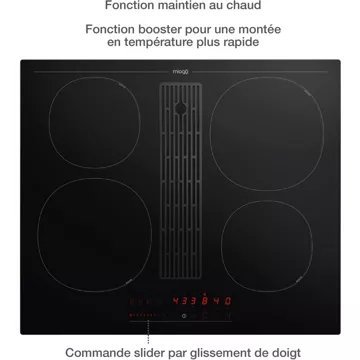 Tous les foyers de la table aspirante MIOGO MHI601H comportent une fonction Booster et une minuterie. Vous pourrez donc réduire le temps que vous passez en cuisine grâce à cette plaque de cuisson qui détecte automatique les récipients. Une fois que la cuisson est terminée, activez la fonction Maintenir au chaud pour que votre plat reste à la bonne température.