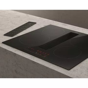 - Type de table : induction avec hotte intégrée, solution pratique et esthétique pour combiner la table de cuisson et la hotte. Elle nécessite un encastrement spécifique (voir infos dimensions).