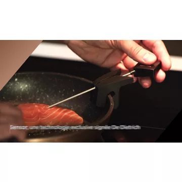 - Le + : grâce à sa sonde connectée, la table indique en temps réel et au degré près la température mesurée dans votre plat.