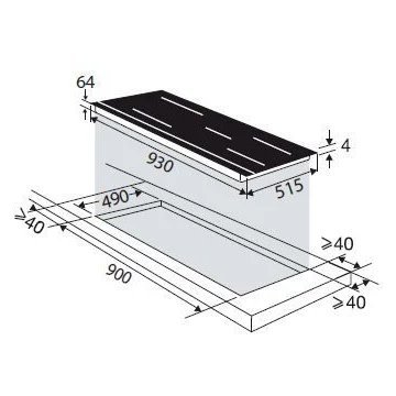 - LxHxP (encastrement) : 90 x 6 x 49 cm