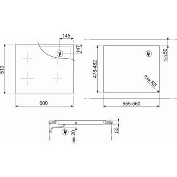 • LxHxP (encastrement) : 55.5 x 7 x 47.8 cm
