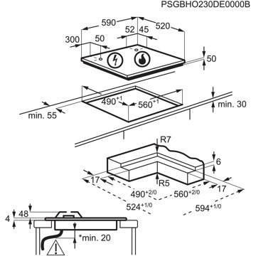 - LxHxP (encastrement) : 56 x 5 x 49 cm