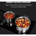 - Sécurités : arrêt automatique, anti surchauffe, verrouillage du clavier, témoin de chaleur résiduelle, détection d’absence de récipient, témoin de mise sous tension